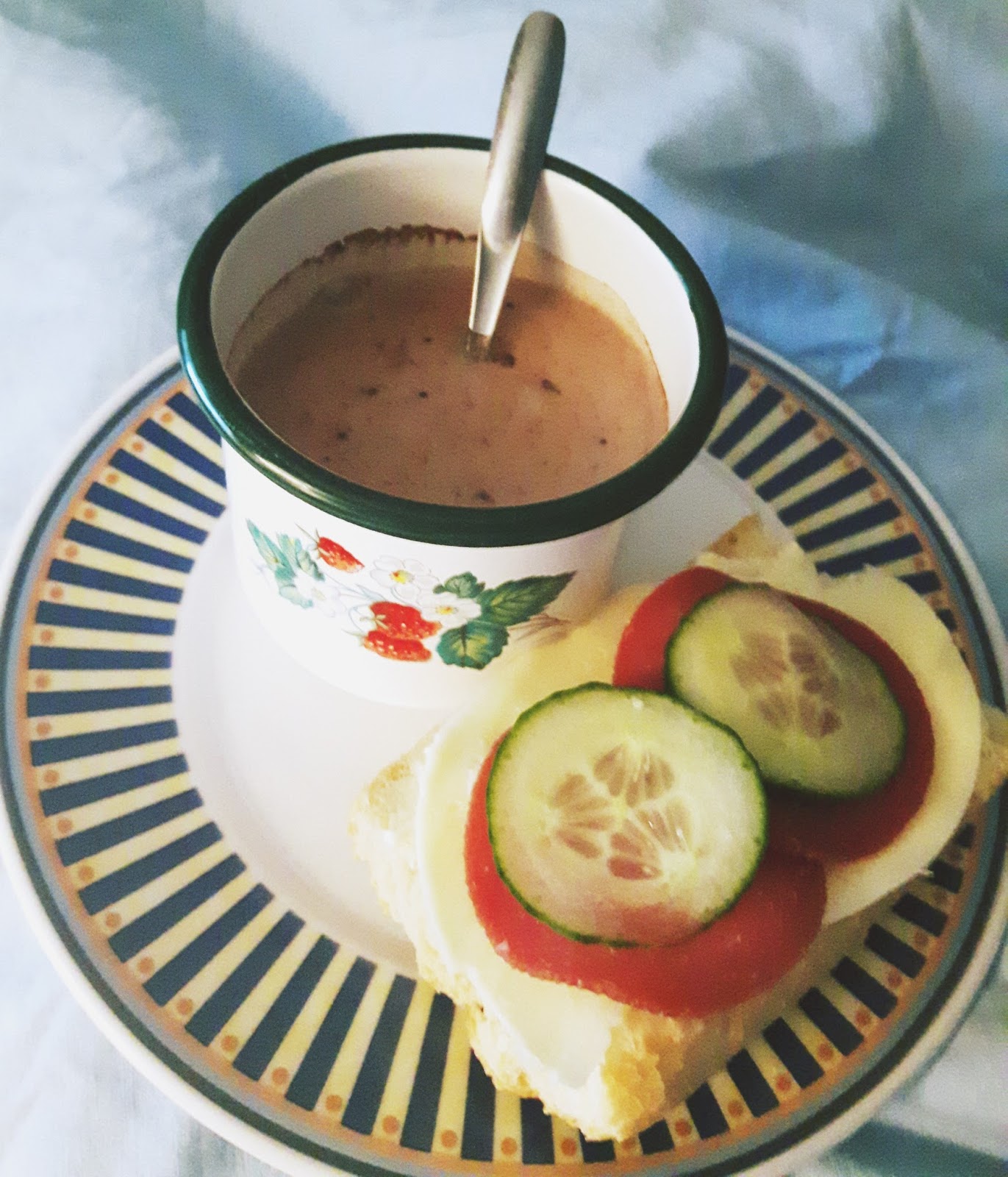 | Ihana sinivalkoinen astia on Kierrätyskeskuksen löytö 0,50€ hinta. Tällaista olen pitkään etsinyt. |