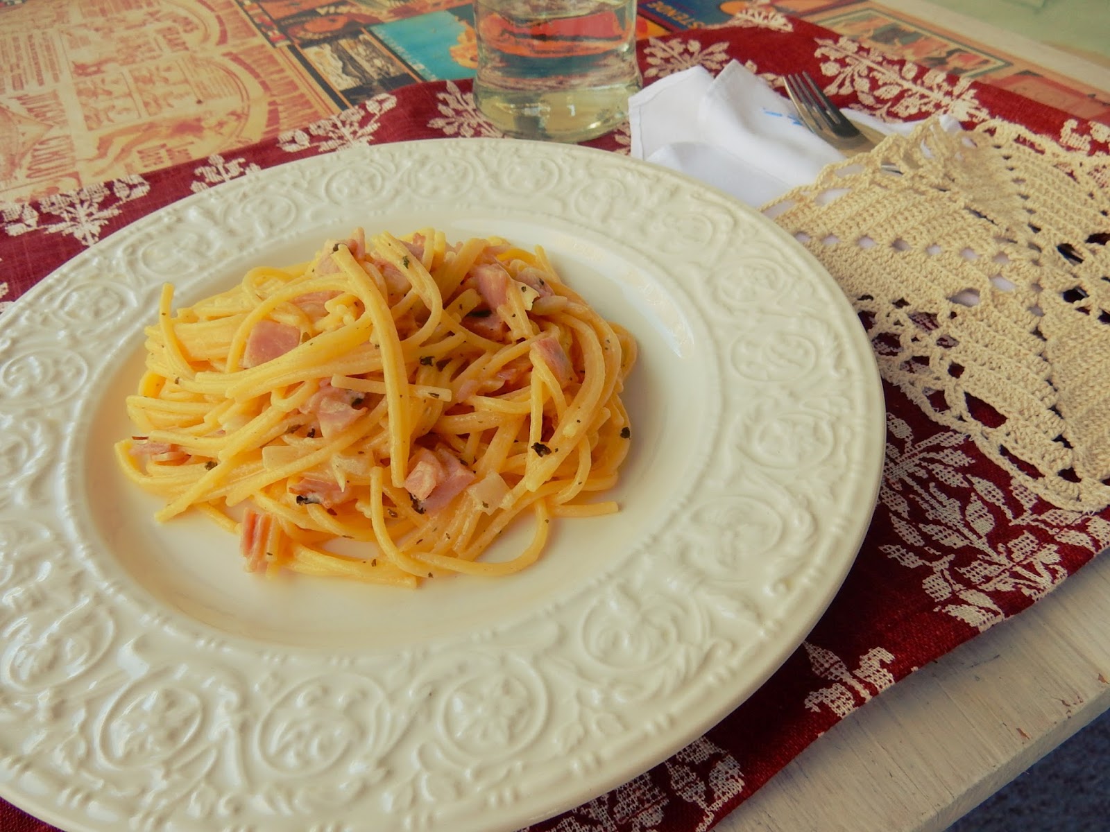 Pastalounas on tehty niin ikään kaapin jämistä. Hyvin yksikertainen ja nopea valmistaa. Tähän voi tosiaan laittaa juuri sitä mitä siellä kaapissa on. Ei tarvitse mennä kauppaan. Ei välttämättä lihaa tarvita ollenkaan. Sitä nyt sattui olemaan kaapissa, niin sitä sitten laitettiin.