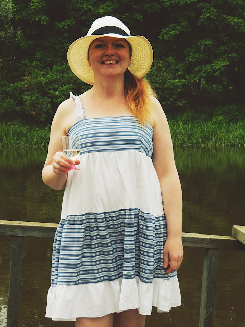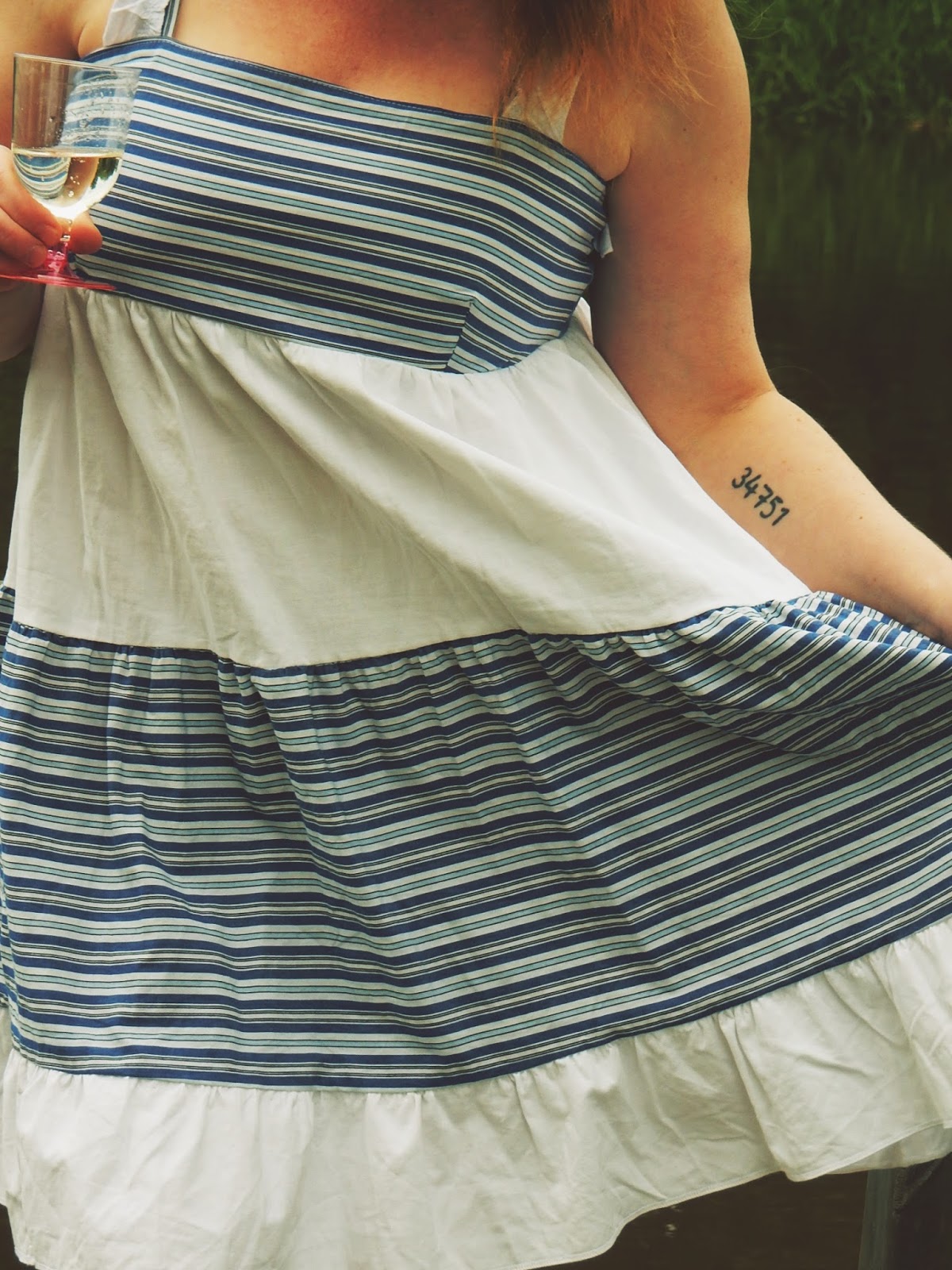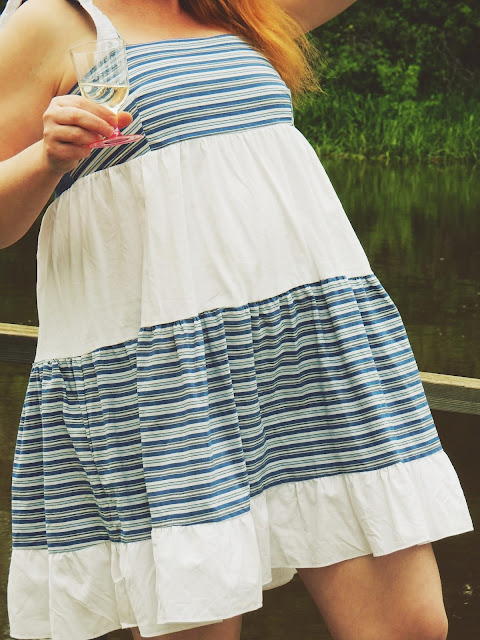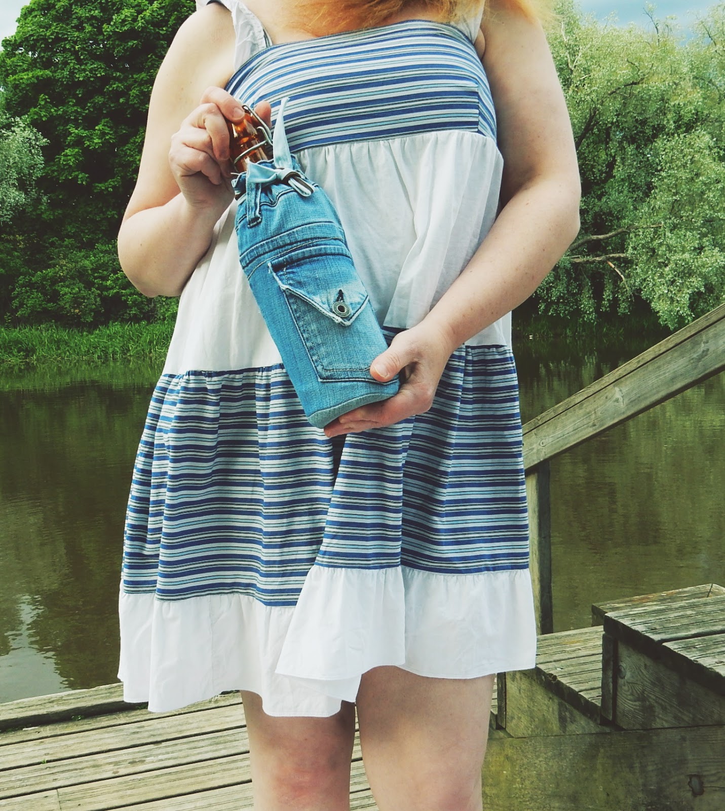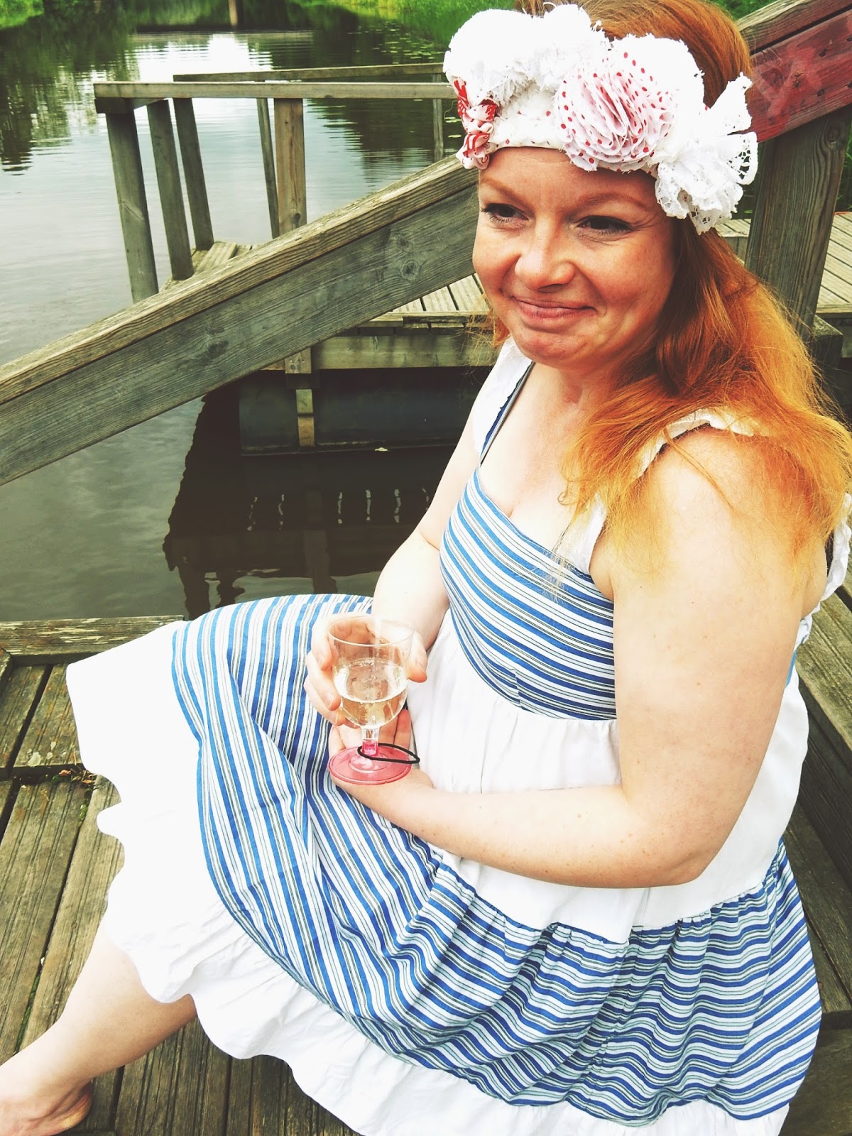 Tämä mekko ei ollut alunperin juhlavuoden mekko, vaan siitä tuli sellainen ihan vahingossa. Täydellinen kesäilta, joen rannalla, jossa kukaan ei liiku, saamme olla aivan rauhassa ja nauttia keskikesän hämärästä. Tähän on mekko tehty. Minusta on todella ihanaa nähdä miten vanhat käyttämättömät vaatteet muuttuvat joksikin super söpöksi ja uusi vaate alkaa elää ihan erilaista elämää.