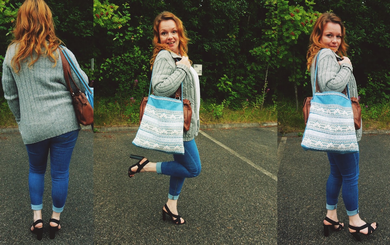 Sitten päästään tärkeimpiin asioihin, nimittäin minun vaatteisiin…Paitani on läjä projektin tulos ja paita on siis vanha miesten paita, hyvää materiaalia vaikka paikoitellen kulumaa olikin. Suuresta paidasta saakin helposti itselleen sopivan paidan. Miesten paita on ilmaisosastolta. Myös muu asuni on ilmaisosastolta löytynyt, ainoastaan farkut on ostettu aikanaan uutena.