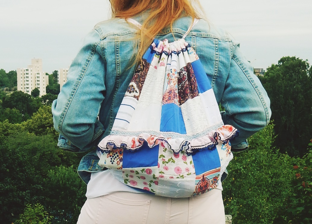 Läjä projekti on tullut siihen kohtaan, että olen leikellyt paitojen jämiä sekä muita kankaan palasia tilkuiksi. Ajatuksena on ollut, että ompelen niillä erilaisia asioita. Yksi näistä tilkkutöistä on jumppapussi, jonka tein kokonaan näistä paitojen ja tilkkujen jämistä, hyödynsin myös ihan pienet osat. Isoin ongelma minulla tässä hommassa on saada kohdistettua nuo tilkut.
