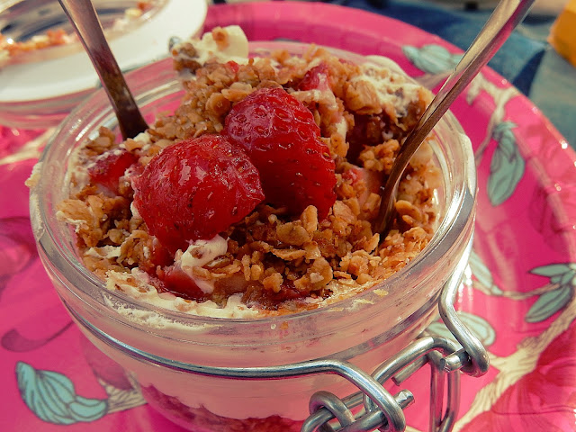 Vatkaa vaniljavaahto ja pilko mansikat paloiksi.