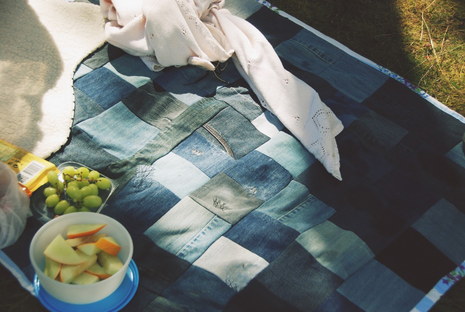 Aina ei jaksa tehdä vain vaatteita, vaan välillä haluaa tehdä jotakin muuta. Siksi tällä kertaa tuli vanhoista farkuista tilkkutyö ja tyynyt. Näillä onkin ihana mennä piknikille ja rentoutua oikein kunnolla. Postauksessa mukana myös herkullinen resepti.