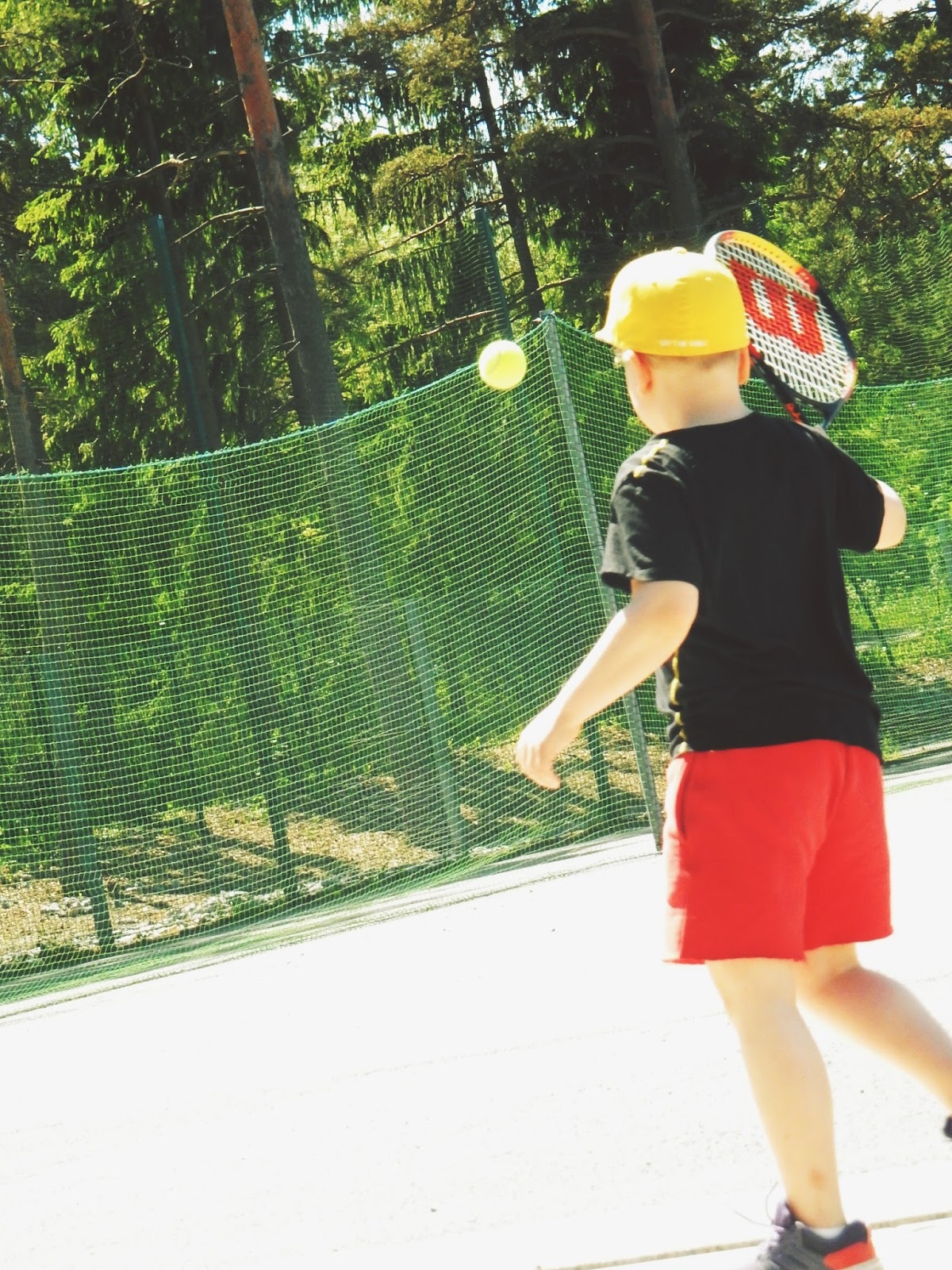 | Tenniksestä tuli meidän kesäharrastus. Hyvät ja halvat mailat löytyi Kierrätyskeskuksesta ja kentät ovat ilmaiset. Mahtava meno ja meininki joka kerta kun lähdettiin pelaamaan. Ensi vuonna lisää tätä. |