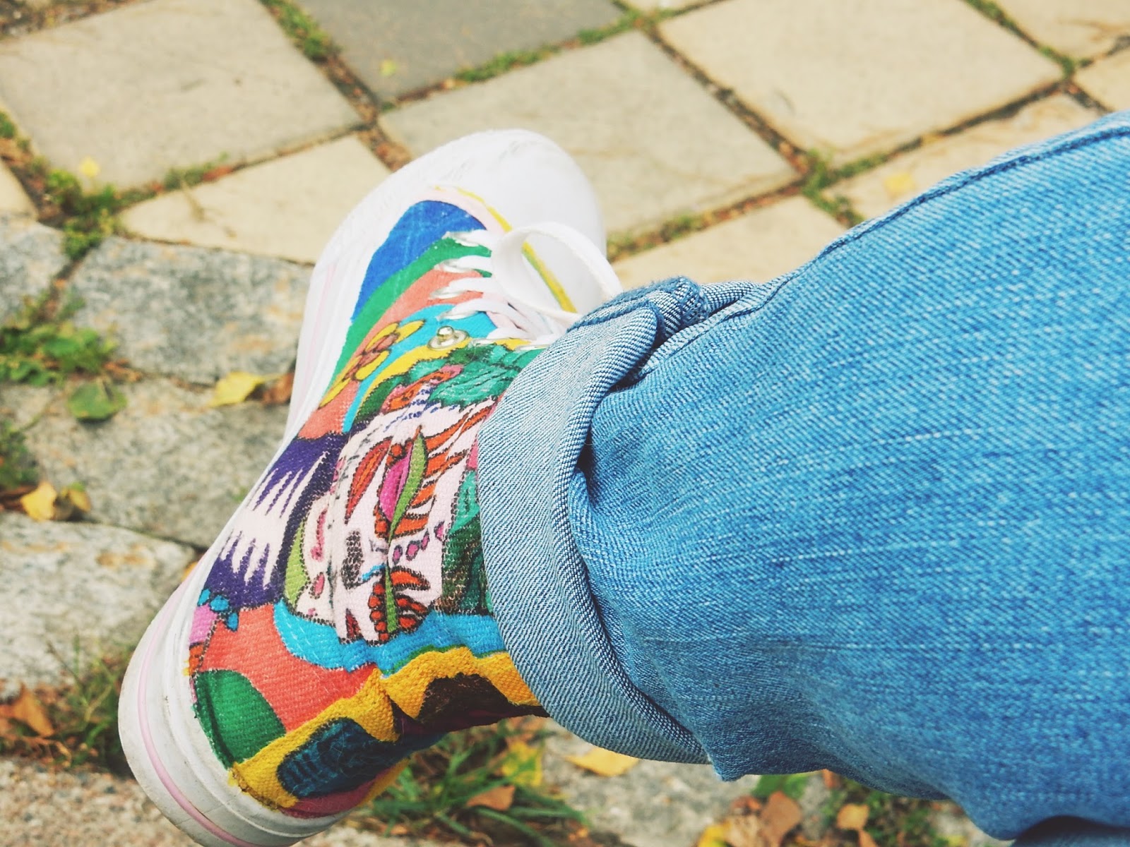 | Neulehuppari ja farkut on ommeltu paitojen ja farkkujen jämistä. Puman lenkkarit on Kierrätyskeskuksesta 3€. Farkut ja Neule |