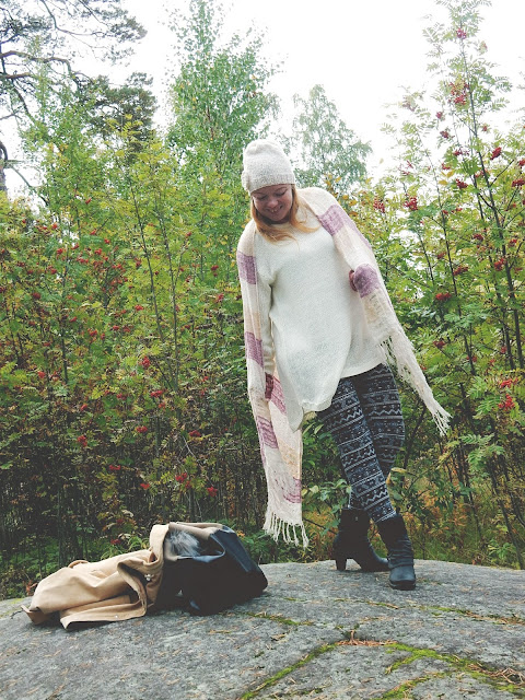 Monet ovat tottuneet siihen, että minulla on paljon isoja, neuleita joihin tykkään kääriytyä näin syksyisin ja se ei tule koskaan muuttumaan mihinkään. Ihan paras tapa pukeutua kerroksittain kun laittaa päälleen lopuksi oversize jakun tai paidan. Parhaat löytyy aina miesten osastoilta. Tällainen on minun tyypillinen työasuni ja näissä viihdyn todella hyvin. Tämä asu on enemmän Kassi-Alma tyyliä kuin Lumppumaakarin. Lumppista voi käydä katsomassa täältä.