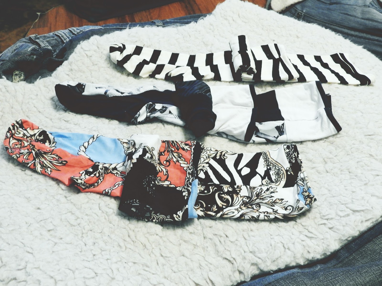 Näiden sukkien materiaaliksi sopii venyvä trikoo, jos haluaa muista materiaaleista tehdä niin kannattaa laittaa saumanvaraa ja pienentää sitä mukaa kuin tarvitsee. Eli kokeilemalla. Itse tein kahden paidan jämästä sekä tilkusta, kaikki venyy aika hyvin, joten ohje on tehty sopimaan niihin.