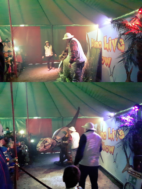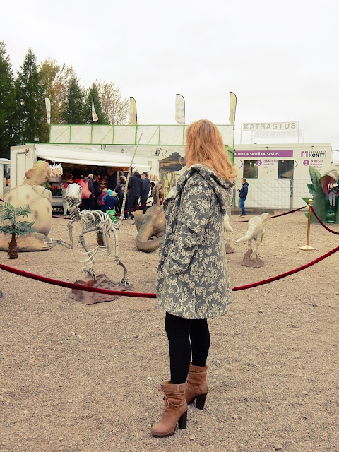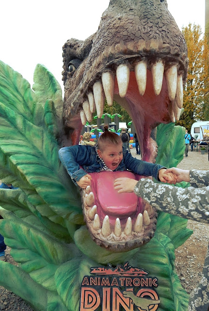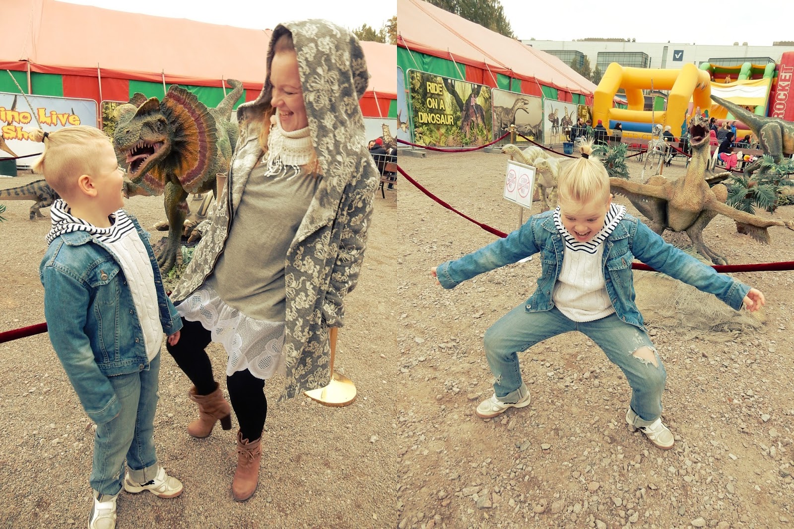 Eilen tehtiinkin kauppareissulla pieni mutka ja käytiin katsomassa mitä dinosaurusten maailmaan kuuluu. Vaikka näyttely oli suunnattu hiukan pienimmille niin kyllä hienosti Härdelli eläytyi näyttelyyn. Voi, kun joskus nähtäisiin vähän isommassa mittakaavassa saman tyyppisiä juttuja. Poikaan uppoi koko show täydestä kuin väärä raha. Lippujen hinnat eivät lopultaan kovin isot olleet vaikka alueella saikin maksaa vähän yhdestä ja toisesta asiasta. Aikuisille tosin tarjottiin aika hyvät kahvit, yleensä en juo tavallista kahvia missään muualla kuin kotona ihan siitä syystä, että kahvi on aina kamalan makuista mutta tällä kertaa kahvi oli keitetty oikein hyvin, eikä kahvi myöskään ollut seissyt pannussa. Kannattaa kyllä käydä fiilistelemässä Dino worldin kummallisessa maailmassa. Näyttelyn lisäksi on show sekä dinoratsastusta. Ulkopuolella on lisää näyttelyä sekä pomppulinnat ja ostoskoju. Härdelli sai mukaansa dinon ja ison määrän hyvää fiilistä.