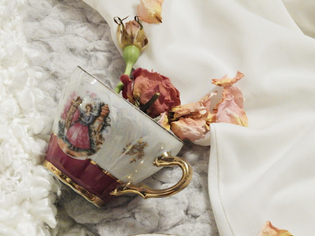 Kuvissa vilahtaa myös vaalea alusmekko, joka on säästetty rakkaan ystäväni tädin jäämistöstä, näitä säästin todella monet, ovat olleet enemmän rekvisiittaa mitä käytössä. Tähän mekkoon lisäsin palan verhoa helmaan, jotta sain siitä käyttökelpoisamman. Minä kun tykkään noista ripsujutuista sen verran paljon, että tämä antaa kivaa volyymia tunikoilleni. Kuvissa näkyy myös kaksi korua, jotka olen itse tehnyt, sekä kahvikuppi, joka on Kierrätyskeskuksesta löytynyt sekin.