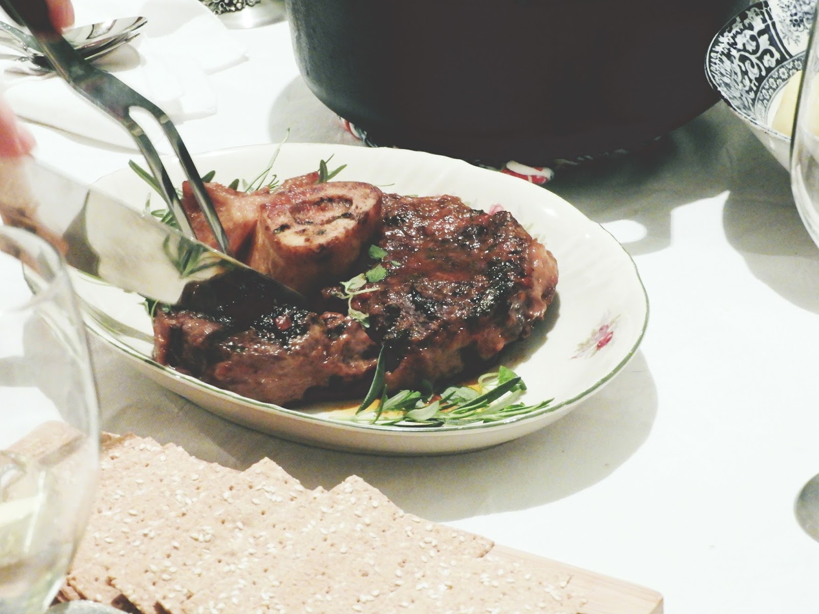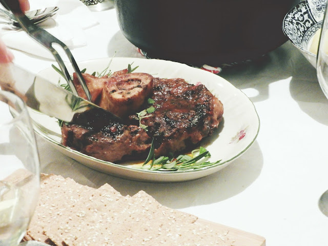 Kekseliäs olet myös ruokapuolella. Fiksu keittää tuosta osso buccon jälkeen vielä tomaattikeittoa. Hyvä sinä! Ihanat nuo kattauksen astiat. Ovatko ehkä kirppislöytöjä?