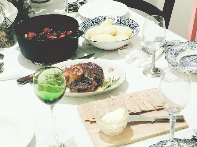 Tiedän, ettei osso buco ole mitään suomalaista ruokaa mutta ei meillä muulloinkaan mitään kovin suomalaista ole, paitsi jouluna. Olemme erittäin huonoja syömään makaronilaatikoita, kesäkeittoja tai makkarakastiketta (jota muuten tein muutama päivä sitten). Tämän osso bucon reseptikään ei ole ihan oikean osso bucon resepti mutta sekään ei haittaa mitään, niistä tarvikkeista tehdään mitä sattuu kaapissa olemaan.