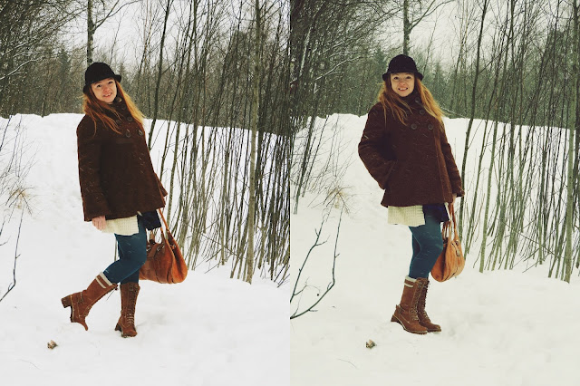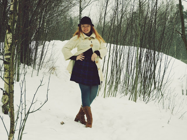 Asullakin on väliä kun vietetään yhteistä aikaa nauttien toistemme seurasta. Päälläni oli itse ommeltu villakangastakki, takki on ikivanha ja ollut joskus esillä blogissa, en vain nyt sattunut löytämään kyseistä takkia mistään ja en näin ollen voi sanoa mistä lehdestä olen kaavat ottanut. Villakangashame taas on yksi helpoimpia tuunauksia mitä voi tehdä. Nimittäin maksihame on vain lyhennetty minimittaiseksi. Yksinkertaista. On muuten ykse ensimmäisistä tuunauksista, joita olen tehnyt mutta en ole koskaan kuvannut hametta. En ennen tuunausta enkä jälkeen, ennen kuin nyt vasta.
