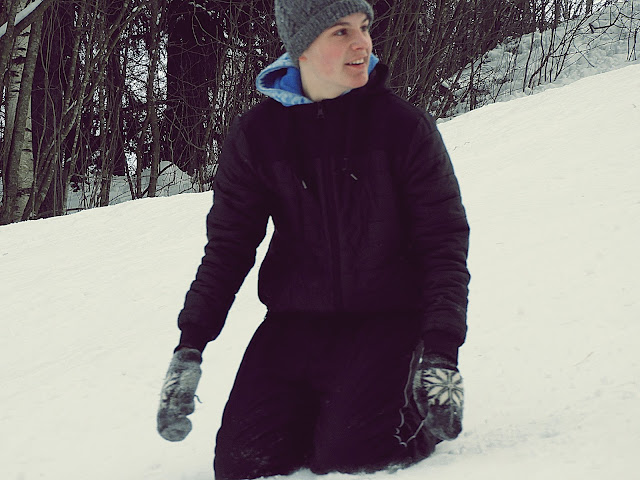 Ei lapset vaadi isoja juttuja ja tavallisesta pulkkailusta saa pienin jutuin vähän erilaisemman kun ottaa eväät mukaan tai vaikka sen kaakaon. Ei pulkkailun tarvitse aina olla samanlaista menoa ja meininkiä, vaan voi keksiä aina jotain muuta siihen myös. Meidän iso Wanhojen tanssija innostui myös peuhtaroimaan lumessa niin, että satutti itsensä lopulta. Hassu poika.