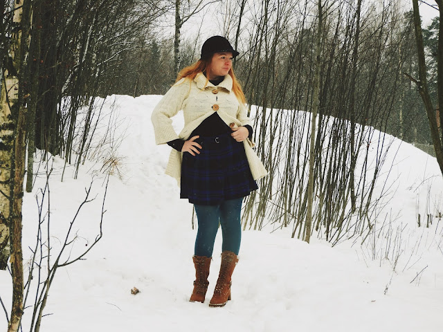 Asullakin on väliä kun vietetään yhteistä aikaa nauttien toistemme seurasta. Päälläni oli itse ommeltu villakangastakki, takki on ikivanha ja ollut joskus esillä blogissa, en vain nyt sattunut löytämään kyseistä takkia mistään ja en näin ollen voi sanoa mistä lehdestä olen kaavat ottanut. Villakangashame taas on yksi helpoimpia tuunauksia mitä voi tehdä. Nimittäin maksihame on vain lyhennetty minimittaiseksi. Yksinkertaista. On muuten ykse ensimmäisistä tuunauksista, joita olen tehnyt mutta en ole koskaan kuvannut hametta. En ennen tuunausta enkä jälkeen, ennen kuin nyt vasta.