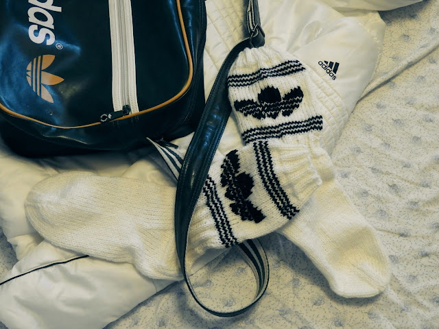 Pojille Adidas tyyppiset sukat, poikien oli ihan pakko saada nämä. Molempien, omilla valituilla väreillä.
