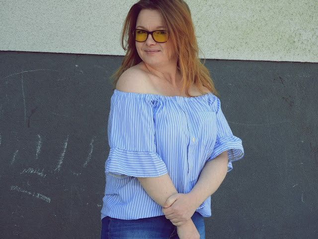 Tämä oli myös hyvä reissu siinä mielessä, että sain hyvin kuvattua myös paitani, jonka olen tehnyt vanhasta miesten paidasta. Off the shoulder on se juttu, joten siihen lähdin minäkin. Tällä kertaa en muokannut paitaa muuten, vaan annoin hihojen jäädä leveiksi, jos se alkaa häiritä minua niin sitten muokkaan hihat toisenlaisiksi. Paidasta tuli kivan rento vaikka sen kanssa on hankala pukea mitään lämmintä mutta tuokaan ei haittaa kun lähinnä sitä käytetään kesäisin. Paitaan on ohjeet täällä. Paita on oikeasti todella helppo tehdä. Jos on jo hiukan ommellut niin tämä ei ole iso juttu.