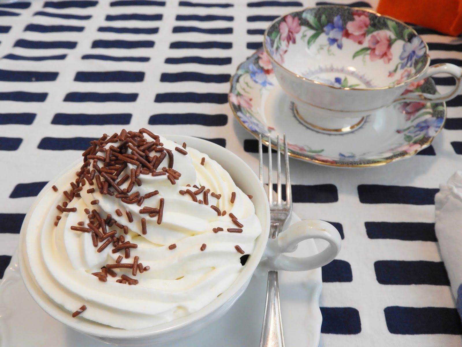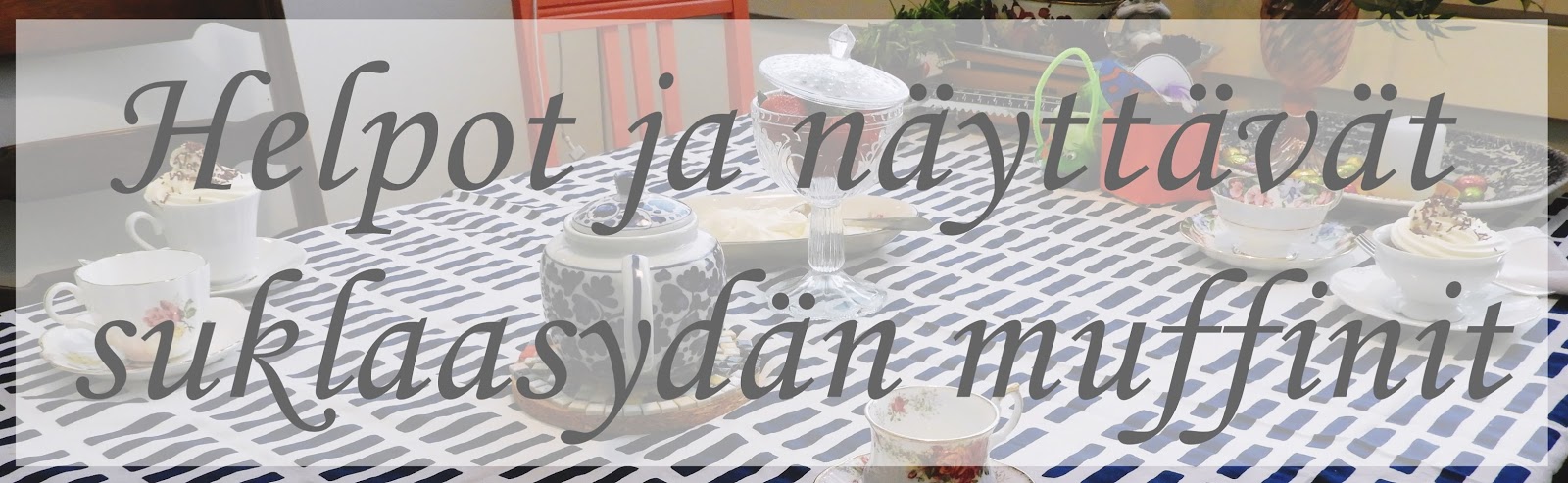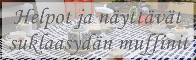 Yksi ihana asia tässä herkkuhetkessä oli myös se, että kaikki astiat on hankittu kirppareilta. Suloiset hopeahaarukat ovat viimeksi löytyneet Lanttilasta. Lanttila on oiva pakka tehdä monenlaisia löytöjä. Suloiset valkoiset kahvikupit on löytyneet muutama vuosi sitten Kierrätyskeskuksesta. Ne on hankittu pelkästään muffinivuoka astioiksi. Niitä vain oli kolme, joten tarvitaan samantyyppisiä pitsisiä lisää. Silloin voi hyvin tarjoilla myös vieraille näitä ihania muffineita. Toki, jos ei halua kuppeihin laittaa niin silikonimuffinivuoat ovat erittäin hyvä vaihtoehto ja niinkin tulee kauniita ja näyttäviä muffineja.
