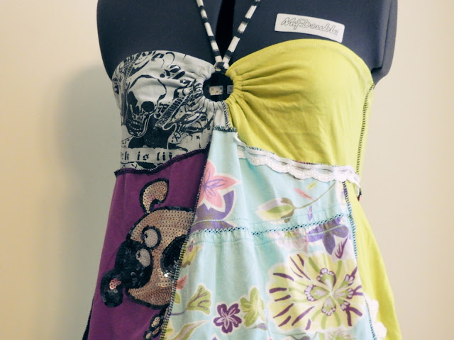 Lumppis-projekti on siitä kiva, kun mielikuvitus saa lentää niin korkealla kuin vain se menee ja materiaaleista voi tehdä ihan mitä tahansa kun yhdistelee kaikki toisiinsa. Kaivoin siis kaikki trikoovaatteet esiin ja aloin sommitella tunikaa niistä. Tunikan tein samalla ajatuksella kuin tämänkin mutta värikkäämmän version. Vanhoista trikoovaatteista voi tehdä vaikka mitä kivoja juttuja. Aina ei tarvitse edes ommella. Ei muuta kuin mielikuvitusta kehiin ja tekemään.