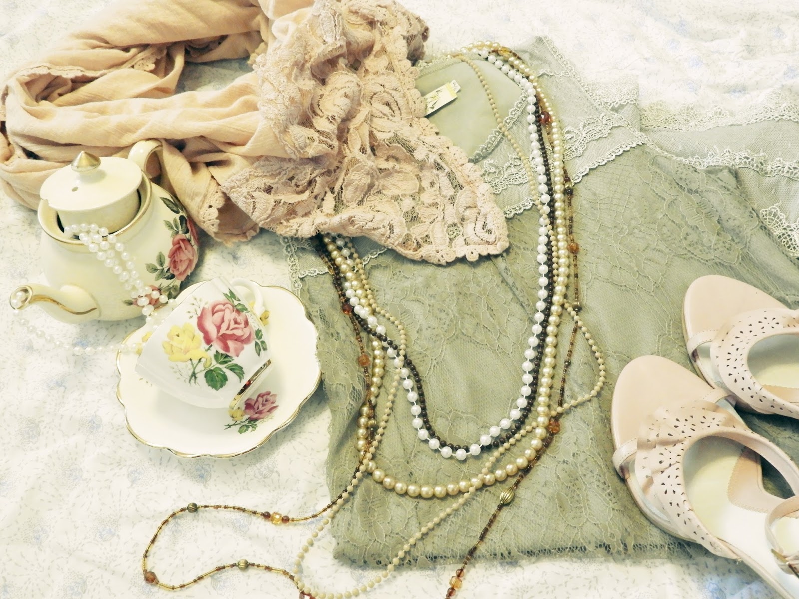 Kuvien suloiset ja romanttiset asiat on hankittu eri kirppareilta, paitsi huivi. Aika helposti kirpuilta löytää erilaisia romanttisia juttuja, joita voi yhdistää helposti toisiinsa tai vaikka kokonaan johonkin toiseen tyyliin. Näin asujen ilme muuttuu helposti ihan toiseksi. Itse tykkään hankkia tällä hetkellä aika paljon kaikkea tosi söpöä kirppiksiltä ja pukea niitä vaikka bohotyylin kanssa tai ihan farkkujen kanssa. Lopputulos on aina ihan erilainen.