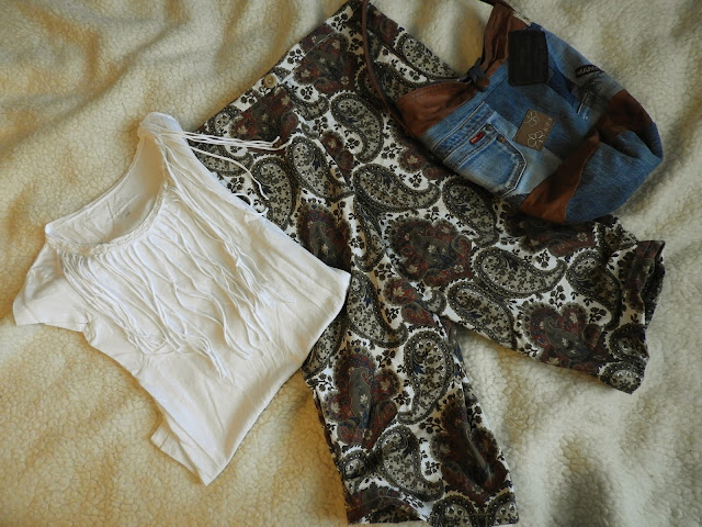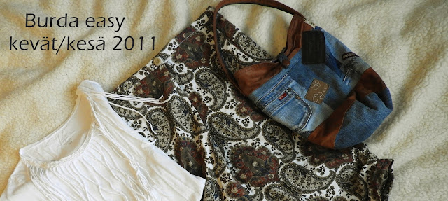 Toinen kangas, jonka löysin lumppulaatikosta oli ohutta farkkua. Kangas on ajalta kun muutimme Helsinkiin, kävin tekemässä pienen ostoreissun ennen muuttoa, että ei ihan heti tarvitsisi alkaa kiertää kauppoja kun voi rauhassa tutustua kotiin ja laittaa kotia valmiiksi. Noh, näitähän on sitten jäänyt vinot pinot kaappeihin ja pakko alkaa saada tehtyä näitä pois. Toinen lumppulaatikon ihanuus oli vanha pussilakana. Lakanat on paljon käytetyt, ehjät mutta koska pidän kuosista paljon, en halunnut laittaa niitä Hope-yhdistykselle vaan ompelen niistä kivoja juttuja.