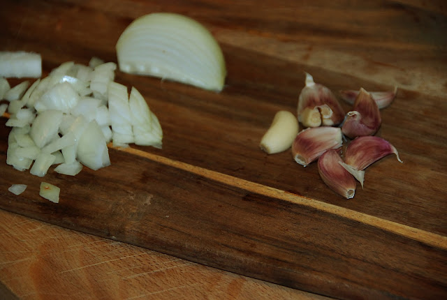 Meillä ei kaapissa juuri mitään ollut, joten otin vain kaikki tomaatit, sipulit ja valkosipulit esiin. Se on jo hyvä pohja keitolle. Meillä on aina myös tomaattimurskaa kaapissa..Koskaan ei tiedä mihin sitä tarvitsee, joten sitä on aina. Mutti on paras koostumukseltaan vaikka toki meillä on myös Lidlin murskaa myöskin.