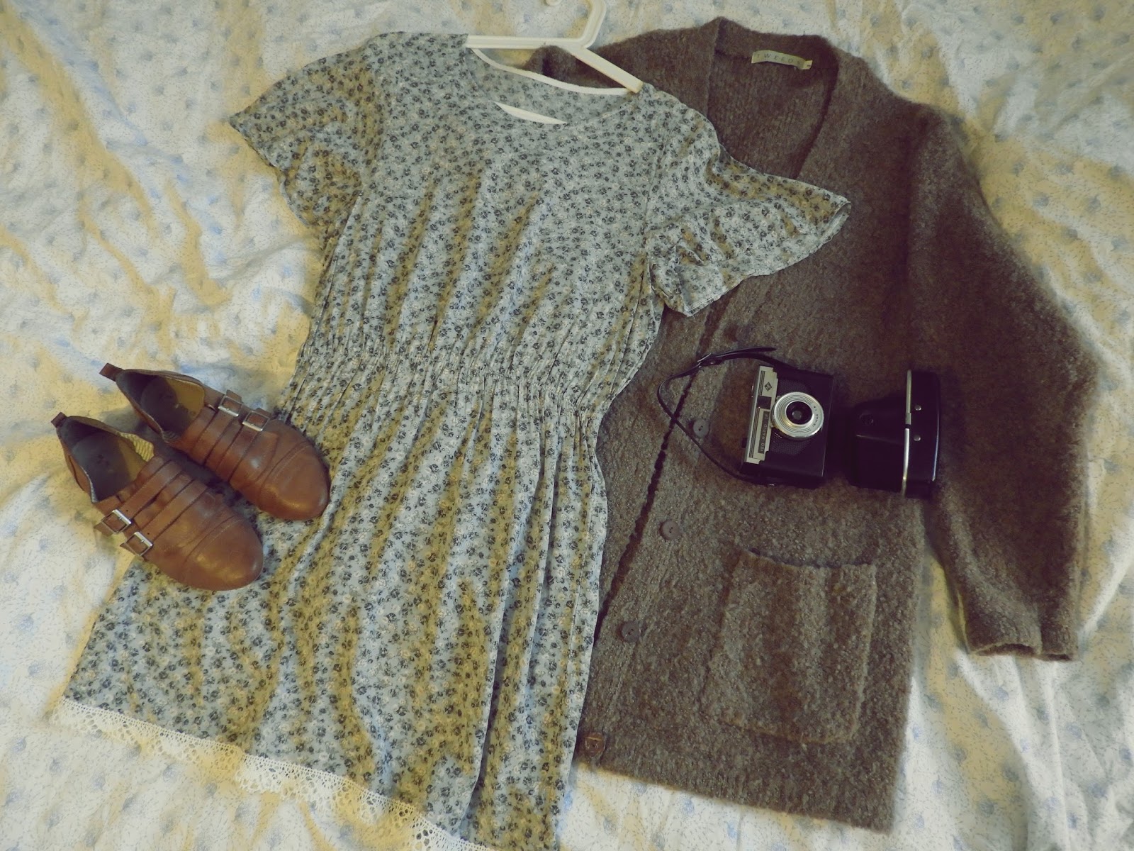 Keväisempään asuun lisäsin myös Kierrätyskeskuksesta viime vuonna löydetyt popottimet. Kutsun tämän tyyppisiä kenkiä popottimiksi, syystä, että ne näyttävät popottimilta. Suloisen romanttinen asu on kiva rikkoa popottimilla ja laittaisin asuun myös nilkkasukat, joissa pitsi reunus. Jos sellaisia ei satu kaupasta löytämään, niin ompelee vain sukan reunaan kapean pitsin. Täydestä menee kuin väärä raha! Toki toimii tämän kanssa myös pitsiset polvisukat ja korolliset sandaalit. Kaikkea kannattaa kokeilla.