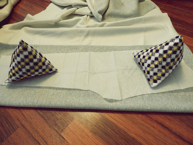Minulla on pari syytä miksi inhoan leikkuutöitä, yksi on se, että joudun tekemään ne poikkeuksetta lattialla ja selkä huutaa silloin hoosiannaa ja toinen on nuppineulojen kiinnittäminen kankaalle kun asettelee kaavoja paikalleen.