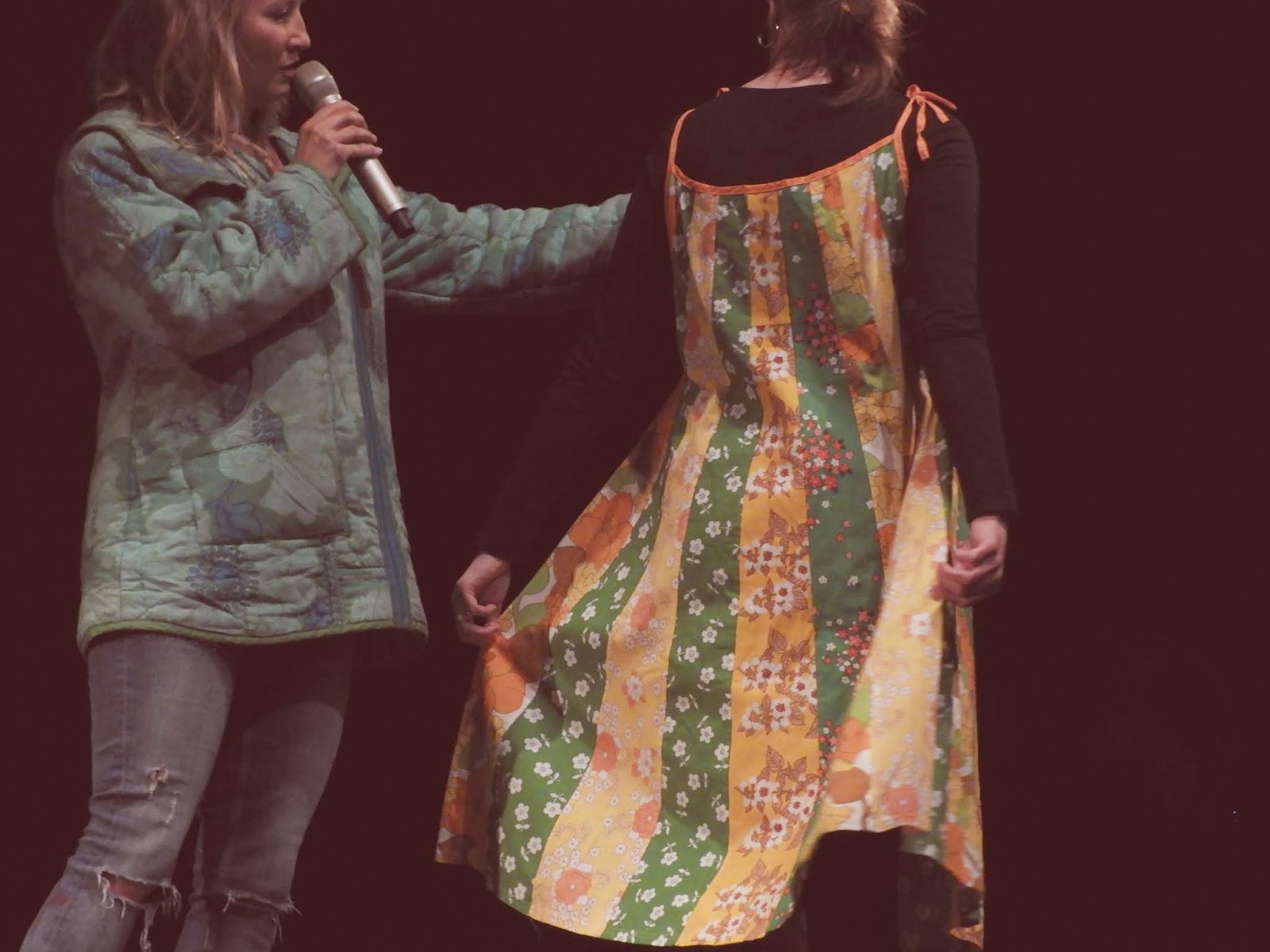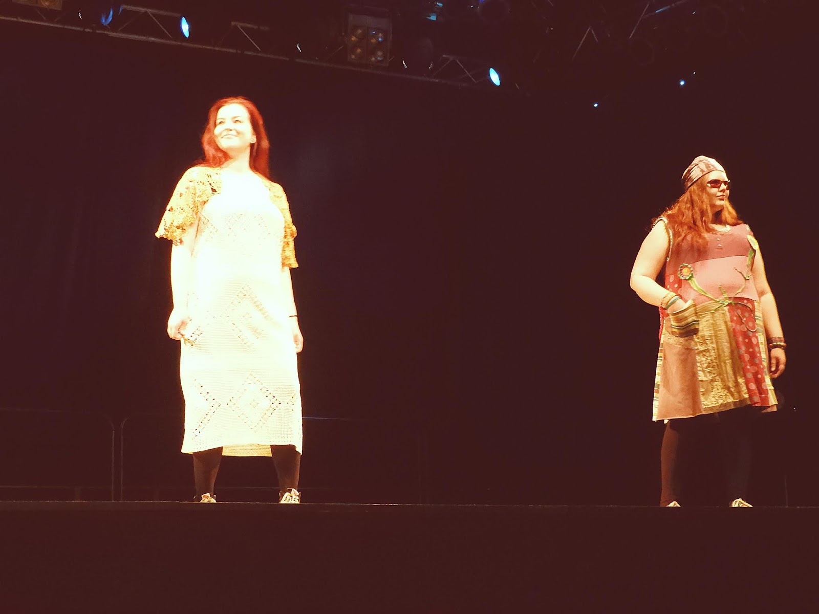 Tähän postaukseen laitan muutaman kuvan muotinäytöksestä ja huomenna sitten hiukan muuta. Vähän millainen asu minulla oli päällä ja mitä kaikkea kivaa festareilla oli tajota. Huomioikaa myös juontajan tikkitakki, joka on tehty vanhasta täkistä.