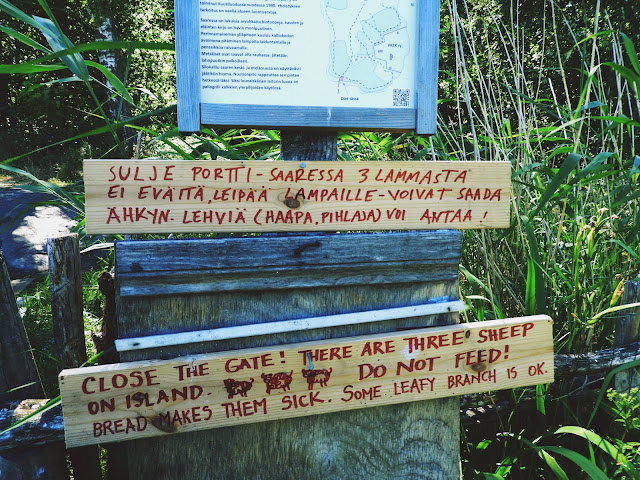 Meidän vanha asunto tyhjeni sunnuntaina kokonaan ja se saatiin myös hyvin siivottua ja paklattua. Oli siis oikea aika hakea meidän ensimmäiset pyörät ja lähteä pyöräilemään. Sunnuntaina ei kelit olleet ihan kaikkein parhaimmat, kun tuuli oli kova, mutta auriko möllötti kivasti taivaalta. Olin aluksi vähän skeptinen fillaroinnille ja suunnitelmat muuttuivat todella monta kertaa vanhan asunnon pihalla, ennen kuin tehtiin lopullinen päätös, joka oli ihan oikea päätös. Pyöräillään vanhaan kaupunkiin, jatketaan siitä kävellen Lammassaaren vieressä olevalle Kuusiluodolle, jossa emme ole koskaan olleet. Kuusiluodolla on aina kesäisin vapaana myös lampaita mutta sunnuntaina olivat niin piilossa, ettei niistä näkynyt villan tupsuakaan mutta papanoita kyllä nähtiin. Olihan sekin nyt jotakin. Vaikka saari on ihan Arabiarannan vierustalla niin se on aivan eri maailma siitä huolimatta. Tämä onkin Helsingissä hyvin kiehtovaa, kun katsot toiseen suuntaan, näet ihanan luonnon, kun katsot toiseen suuntaan näet kaupungin sykkeen… Se on todella upea kontrasti.