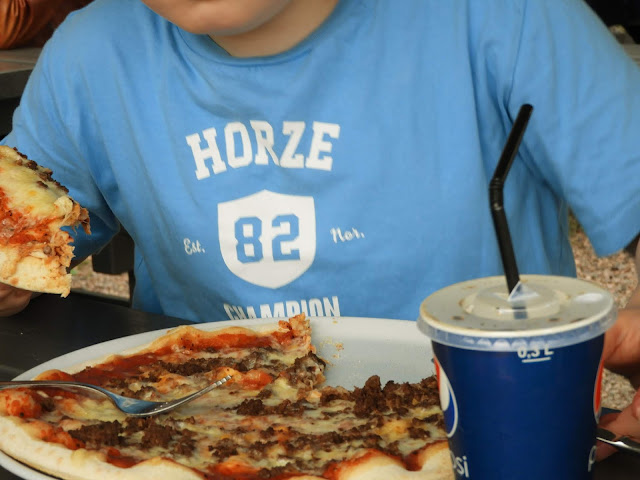 Huomasin eilen kun käytiin retkellä, että meillä jokaisella oli jotakin kirppisvaatetta yllään tai itse tehtyä. Paitani olen tehnyt noin 10 vuotta sitten ja kaava on muistaakseni jossakin La Mia Boutiquen lehdestä. Kangas oli aika hauska, raitaa mutta raidat on tehty hopealangalla, aika ihanaa kangasta, puuvillaa. Härdellin housut ovat isoveljen vanhat ja ovat minun käsialaa, t-paita on kirppikseltä ja lippis isoveikan. Isoveljen vaatetus oli t-paidan ja farkkutakin osalta kirppikseltä ja lippiksen hän on tuunannut itse graffiti pajalla. Näin niitä voi sekoitella hyvin, noita vaatteita. Myös eväsreppu on hankittu Kierrätyskeskuksesta. Näppärän kätevä vehje.
