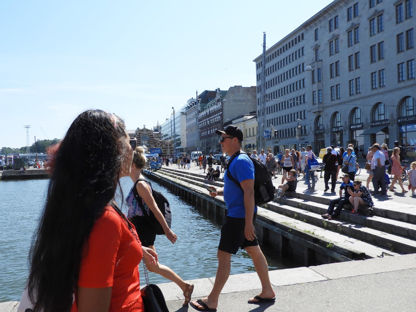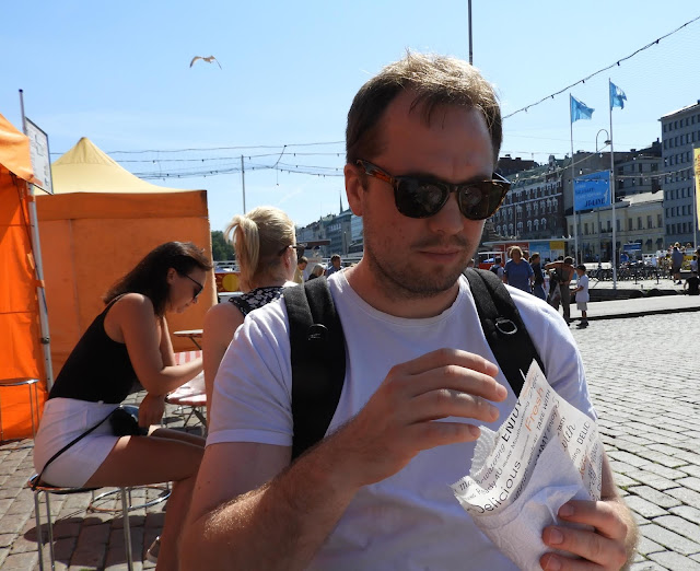 Ihanaa suomalaista katuruokaa, turisteja, suomalaisia herkkuja myynnissä, turistitilpehööriä sekä upeita koruja, vesibussit liikkuvat edestakaisin vieden ihmisiä eri paikkoihin. aivan ihanaa on istua siinä vilinässä ruokakojussa ja syödä välipalaa. Ainoa mikä ärsyttää tässä hommassa on lokit. Onneksi edes yritetään niitä hillitä mutta ne ovat ovelia kakkiaisia.