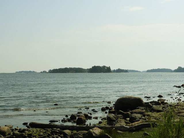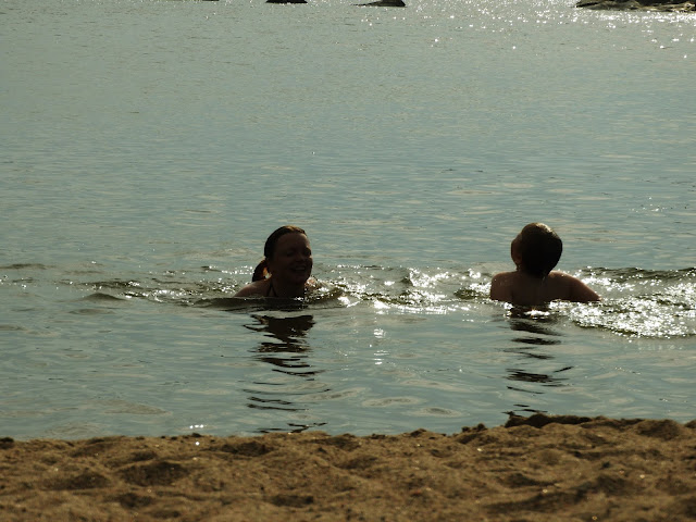 Käveltiin suoraan Aurinkolaaksoon, syötiin jäätelöt ja dipattiin itsemme mereen. Uiminen olikin meillä tarkoituksena myös mutta vähän eri paikassa kuin Aurinkolaaksossa. Vesi oli aivan ihanan lämmintä ja viihdyttiin yllättävän pitkään rannalla, ei olla kovin ranta ihmisiä. Ampiaisiakaan siellä ei juuri ollut, joten saatiin nauttia myös eväistä hiukan enemmän. Härdelli sai popsia porkkanaa ja minä pulleita minitomaatteja. Kyllä kelpasi ja fiilis oli lopulta hyvä kun lähdettiin takaisin kotiin.