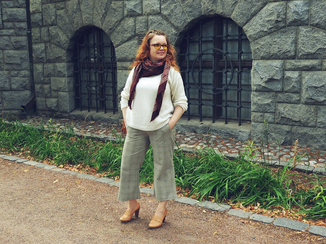 Housut on todella helppo tuunata, mittaa ja leikkaa sopivan lyhyeiksi ja tee taitteet. Matskua näissä pöksyissä olisi ollut myös upslaakeihin mutta halusin yksinkertaisemmat näistä. Minulle on tullut nyt villitys saada suoriahousuja kaappiin enemmän ja varsinkin erilaisilla ruuduilla. Varsinkin lempikuosini, kukonaskel on alkanut kummittelemaan entistä enemmän tuolla päässä. Takkia, housua, mekkoa…Haluun kukonalskelta!