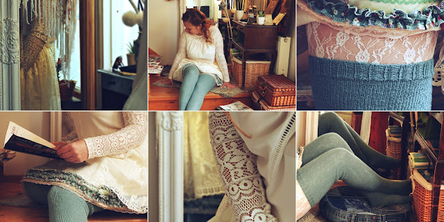 Ihanan yltiöpäisen romanttinen asu, joka sopii todella hyvin nyt syksyyn myös. Tulee niin suloisen pehmeä olo kun pukeutuu yliampuvan romanttisesti välillä. Tulikin tästä mieleen, että viime syksynä ompelin meidän laivareissulle suloisen pitsihameen mutta koska olin kipeä niin ei tullut kuvattua kyseistä asua ollenkaan. Se on pakko tehdä mahdollisimman pian tässä syksyllä, niin saatte nähdä mitä ihanaa voi tehdä värillisistä pitsiverhoista.