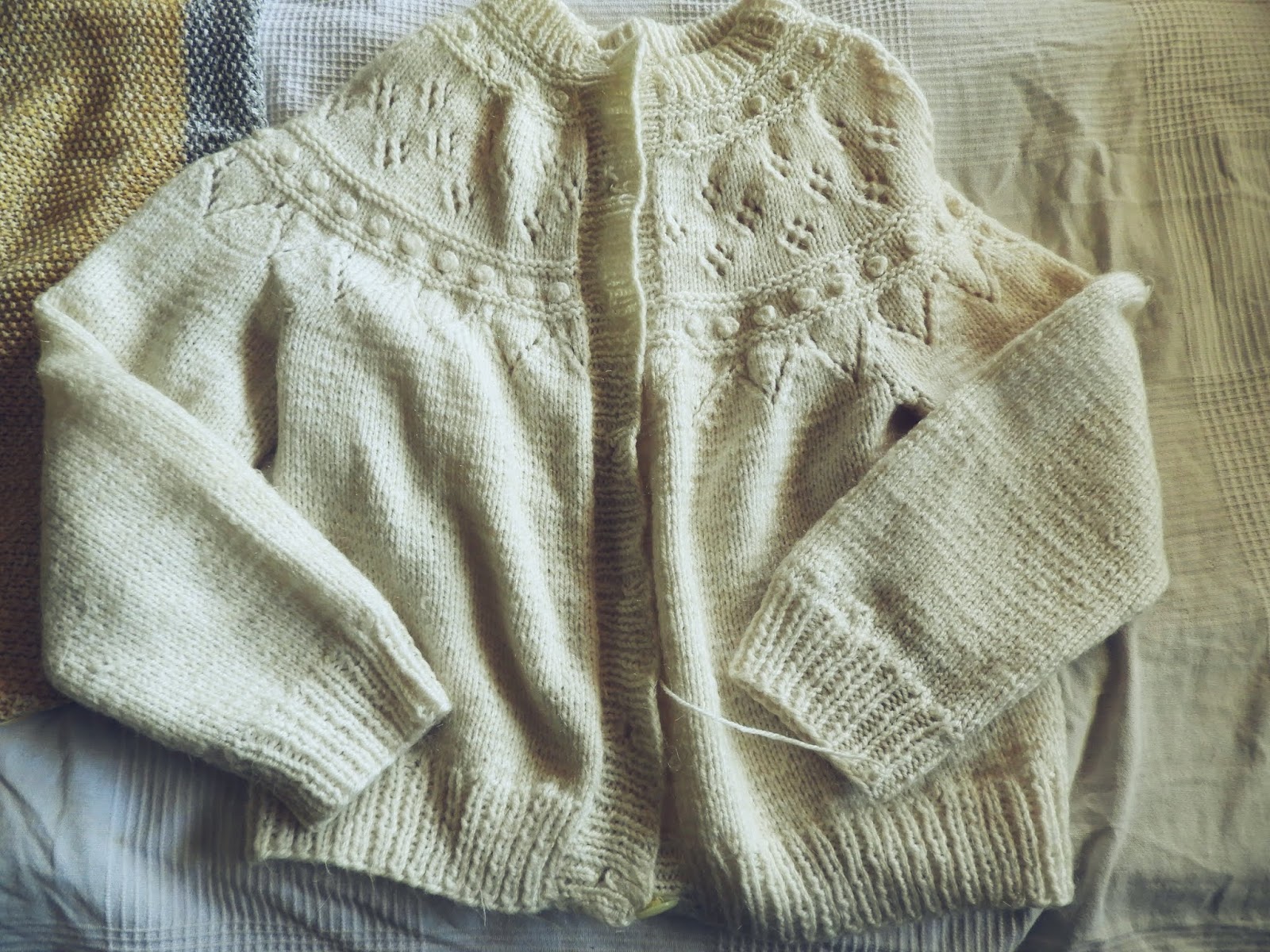 Jokaisella vaatteella on tarina, tai ainakin minun vaatteilla on erilaisia tarinoita. Nyt kerron yhden minulle hyvin rakkaan vaatteen tarinan. Tämä vaate kertoo ihmisestä, joka on ollut lapsuudessani mukana, hänen poikansa on minulle edelleen tärkeä ja on minun läheinen ystäväni. Kun rakkaan ystäväni äiti jätti tämän maan, niin sain käydä hakemassa vaatteita ja kenkiä sekä muuta tavaraa, mitkä on minulle tärkeitä tai joista voin tehdä jotakin. Yksi tällainen asia oli villatakki, itse tehty villatakki. Keseinen villatakki on pyörinyt tuolla ”mitä teen tästä”-laatikossa monta vuotta, ihan siitä syystä, että villatakki on minulle aivan väärän mallinen ja takkiin oli tullut pitkiä langanpätkiä kun oli jäänyt johonkin kiinni, lankoja myös mennyt poikki. Tästä syystä se vain pyöri ja pyöri laatikossa.