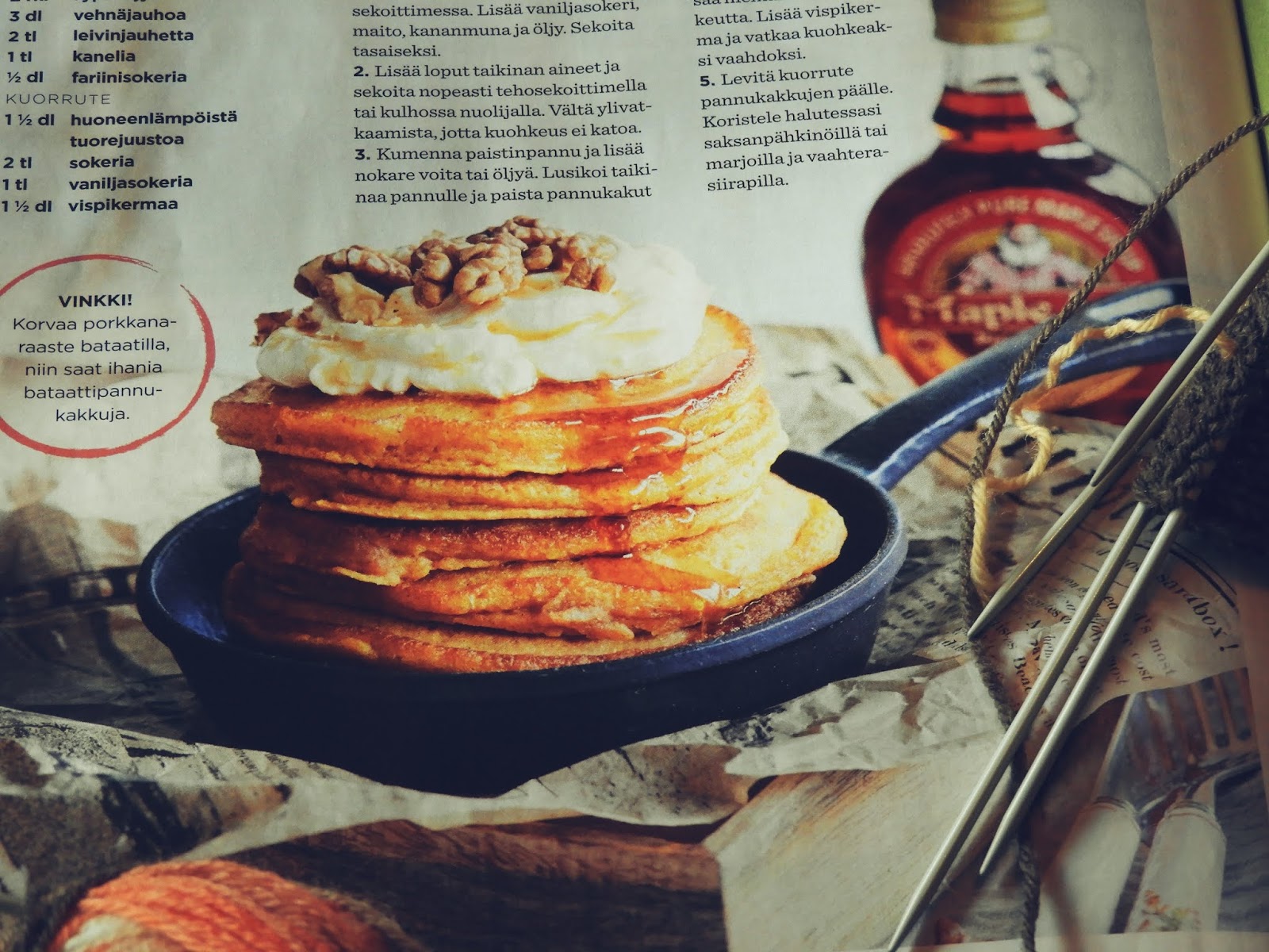 En juurikaan lue lehtiä, jos kyse ei ole alani lehdistä, mutta jos lehdessä tosiaan on jotakin todella kiinnostavaa, niin kyseinen lehti löytää tiensä kotiini ja silloin luetaan lehti kannesta kanteen. Sellainen lehti käveli vastaan tämän kuun alussa, lehti on Kotivinkki ja numero on omistettu kokonaan pikkurahalle. On minibudjettia ruokaan, matkailuun ja pukeutumiseen, on langanjämien hyötykäyttö vinkkiä yms. Kaikkea kivaa, juuri sellaista mistä itse tykkään ja tykkään lukea. Toki minunkin naamari sieltä löytyy mutta se ei ole tässä nyt se oleellinen asia, vaan siellä on monta hyvää resepti-ideaa, joita haluan kokeilla sekä tietenkin nuo neuleohjeet.