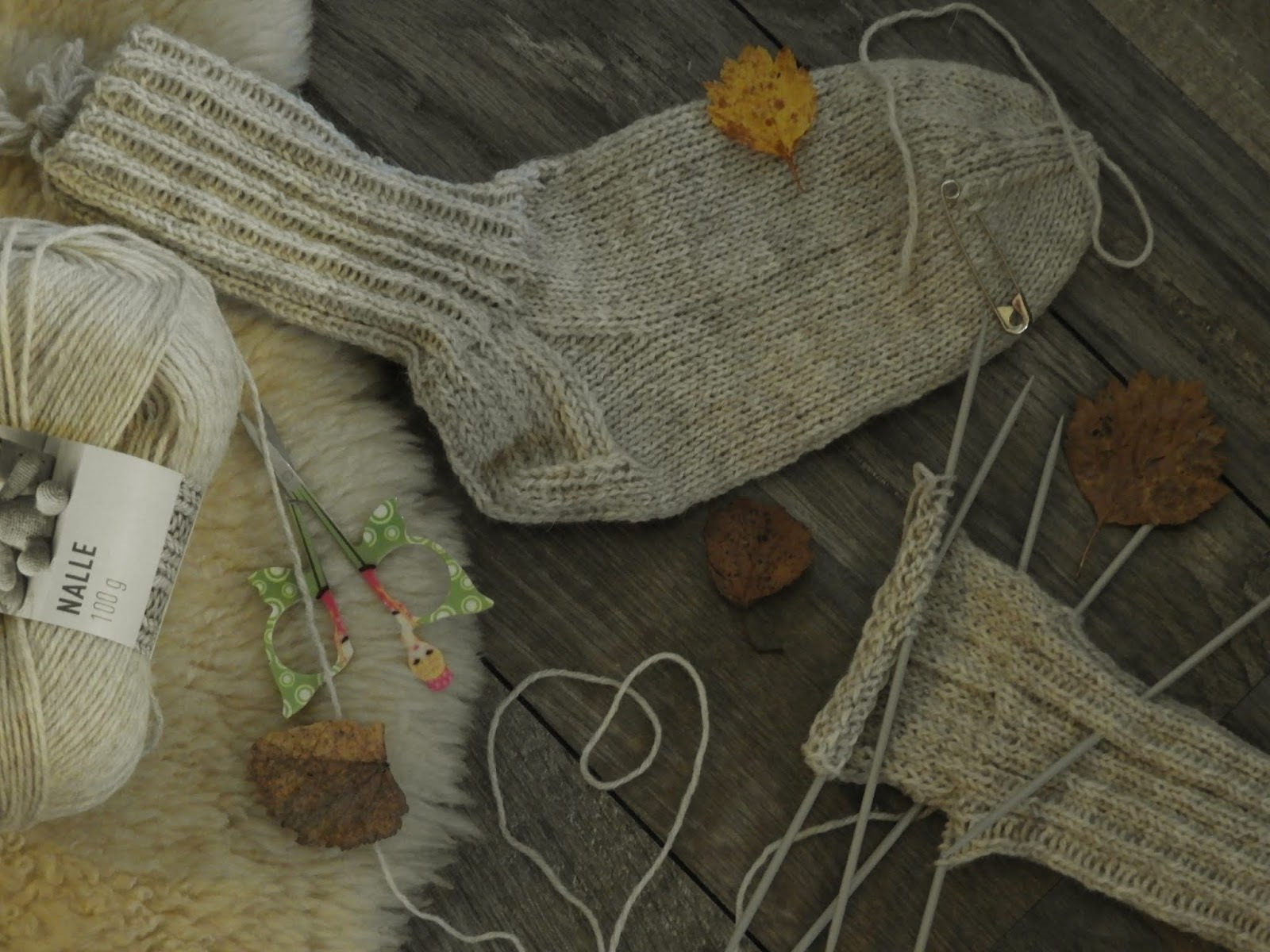 Seuraavana päivänä tehtiin kirppiskierros mutta sopivaa lankaa ei löytynyt. Oli siis pakko tällä kertaa mennä ihan kauppaan hakemaan uutta lankaa. Omat työt syrjään ja tytölle saatiin sukat valmmiiksi muutamassa illassa. Ihan tavalliset perussukat, ei mitään värivaihteluita, ei kuvioita, ihan perus vaan. Tiedättekö, en ole koskaan ajatellut miten rentouttavaa on välillä neuloa ihan vaan perussukkaa. Sen neulominen on ihan erilaista kuin monivärisiä tai kuviollisia. Nämä ovat juuri sellaiset aivot narikkaan -sukat, joita olen tässä kyllä oikeasti tarvinnutkin.