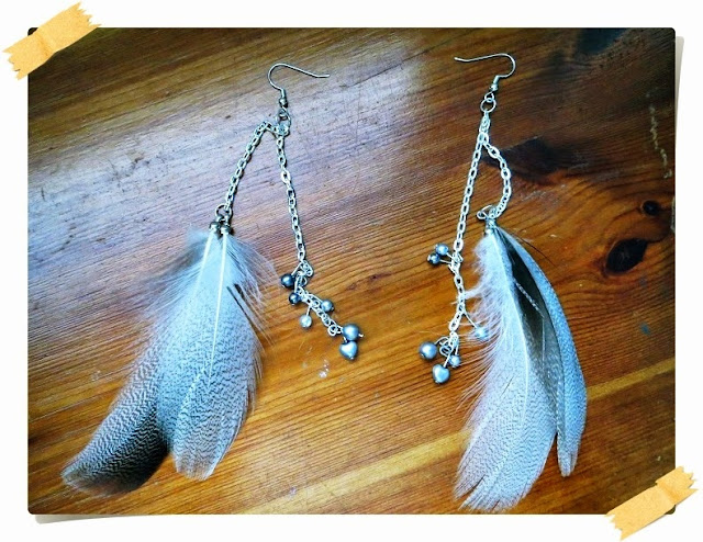 Kuvissä näkyvät korvikset ovat myös minun tekemäni. Olenkin ne joskus aikaa sitten täällä esitellytkin, ne löytyy täältä. Korumateriaaleja löytyy myös Kierrätyskeskuksesta. Tällä hetkellä tulee tehtyä koruja lähinnä vain nuorisotiloilla nuorten kanssa, ei juuri kotona enää. Oli tuollainen vaihe tosin kun tein koruja paljon.