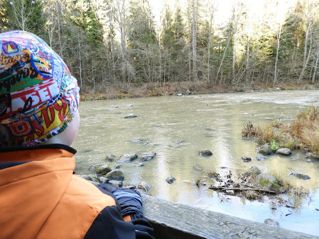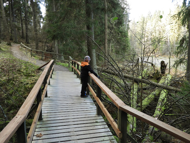 Meidän retki oli hyvin lyhyt mutta hauska, hypättiin pyörien selkään ja ajeltiin Pitkäkosken majalle, josta kävelimme Pitkäkosken luonnonsuojelualueelle. Matka on suhteellisen lyhyt mutta tekee silti todella hyvää koko kropalle. Vielä kun yhdistää kaksi erilaista tapaa kulkea, niin raukea olo on saavutettu. Reissulle ompelin trikoopalasista pipon sekä tuubihuivin. Tuubihuivi on ihan ehdoton juttu tähän aikaan vuodesta kun ulkoillaan ja trikoo ihan ykkänen. Ei liian paksu ja kuuma vaan sopiva. Näitä on muutoinkin todella helppo tehdä, itse en tee edes taitteita reunoille, vaan annan reunojen käpristyä.