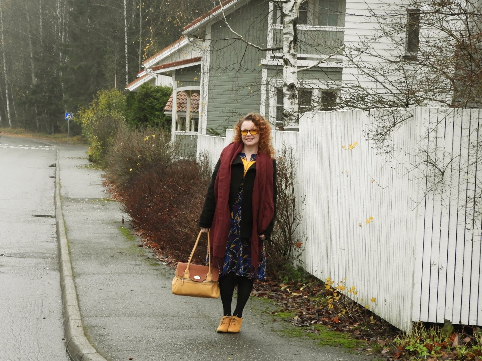 Käytän todellakin viskoosia myös talvella, kesämekot muuntuu aika helposti talviseen muotoon kun laittaa mekon kanssa paksut sukkikset ja neuleen. Kerrospukeutuminen pitää lämpimänä, myös se, ettei vaatteet ole niin juuri ja juuri päälle mahtuvia, vaan takeissakin on väljyyttä, jotta villapaita mahtuu hyvin väliin. Liian kireä ei pidä lämpöä. Tosin nyky villakangastakit eivät sisällä vatiinia, joten eivät muutoinkaan ole talvitakkeja enää (paitsi laadukkaat ja hintavat takit, joissa on vatiini välissä)