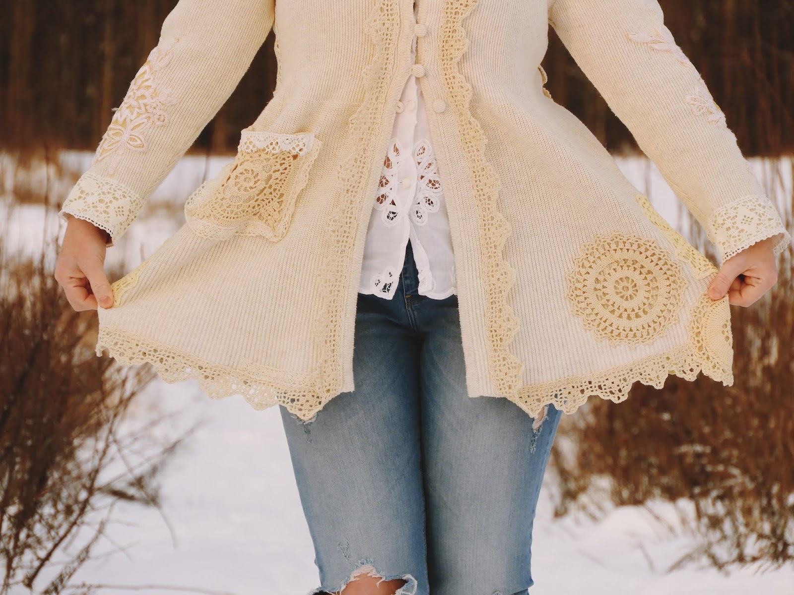 Ihania pitsejä koristeena! Ihailen tapaasi yhdistää asioita ja olla ennakkoluuloton kokeiluissa. Lopputulos on hyvin naisellinen ja romanttinen mutta toimii myös farkkujen kanssa ?