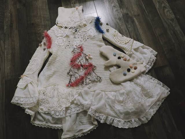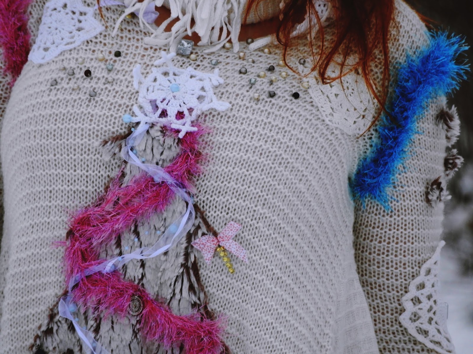 Minulla oli pari erilaista vaihtoehtoa josta lähdin liikkeelle mutta lopulta valitsin joulukuusen, sillä se on helpoin tuunattava, jos ajatellaan, että tehdään yliampuvaa juttua. Toki erilaisia ideoita etsin Pinterestistä mutta päätin yhdistää sen omaan tyyliini sopivaksi, joka muutoinkin on yliampuvaa. Näin muokkautui Shabby Chic -tyyliin Ugly Christmas -paita (SCUCS). Lopputulos on kyllä sellainen kuin pitikin.