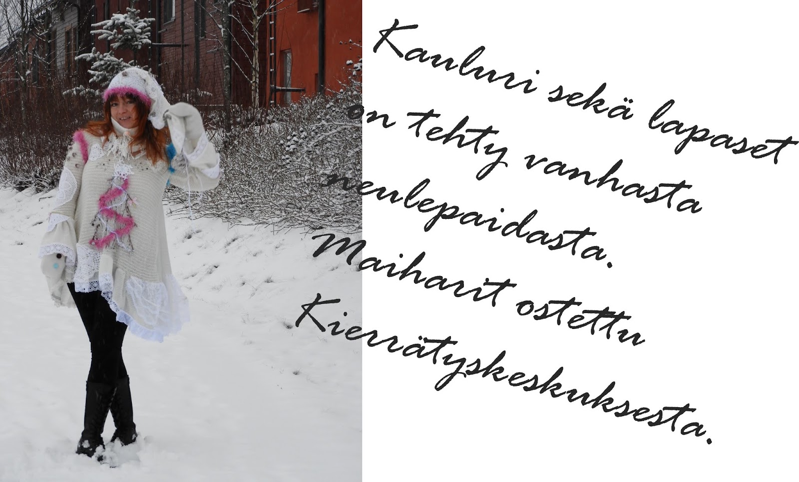 Parasta tässä on kyllä nyt se, että saatiin tuota ihanaa lunta, jotta oli mahdollista kuvata juuri sillä ajatuksella, jota olin suunnitellut. Helsinki on super upea näin talviaikaan myös, ei vain kesällä. Kuvuspaikkoja on valtavasti ja varsinkin tämä meidän uusi asuinalue on ihan paras tausta kuvaamiselle. Toki on Helsingin keskustakin ja upea huvilakatu varsinkin mutta elämäntapahihhulina ajaudun aina tänne tänne maaseudun puolelle. Koska kuvat on otettu eri aikaan, eri paikoissa ja eri valoissa, eivät ole tasaisesti samanlaisia toisiinsa nähden. Toivottavasti ei haittaa kaikkia kuitenkaan tämä asia.