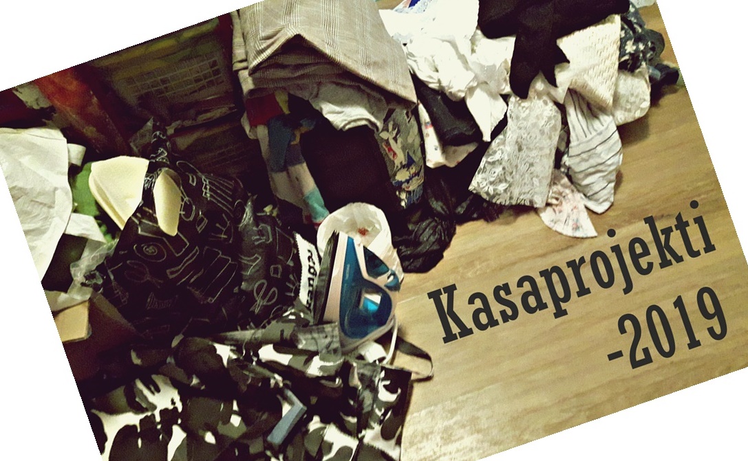 Tuossa joku postaus sitten lukija kommentoi, että olisi kiva nähdä mitä kaikkea kasassa on ja olenkin suunnitellut nyt tekeväni erillisen postauksen siitä, millaista materiaalia tässä kasassa nyt on. Kuinka paljon löytyy kankaita ja miten paljon vaatteita ja tietenkin ne tuunausprojektit, jotka eivät ole sitten ollut hyviä tai niitä ei ole tullut käytettyä enää. Koska minulla on myös käynnissä kevätsiivous niin kasakin saattaa kasvaa tuosta jonkin verran. Nämä minun kasat kun on sellaisia, joihin heitetään kaikki sellainen mistä ei oikein tiedä mitä ne on ja mitä niille tehdään. Useasti siellä olevat vaatteet lähtee kierrätykseen, jos ovat ehjiä ja hyväkuntoisia. Ei tosin aina, niin kuin ei tällä kertaa käynyt neuleelle ja paidalle.