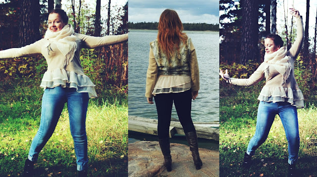 Yksi iso syy miksi paita on minun lempparini on se, että sen voi yhdistää minkä kanssa tahansa. Kuvissa näkee kaksi tapaa miten yhdistän tämän paidan kaikkein eniten. Kuvissa näkyy myös lempifarkkuni, leggarini sekä takkini. Valitettavasti toista takkia ei tähän postaukseen tullut, jota käytän lähes aina syksyisin ja keväisin. Ehkä siitä pitää tehdä oma postaus tähän lempivaate -kampanjan tiimoilla.