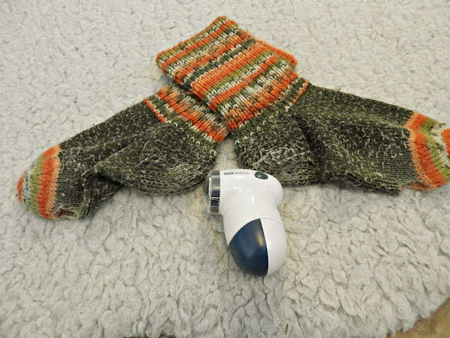 Täytyy myöntää, että kyllä minua harmitti kovasti, etten tuota nöyhtää saanut revittyä sukista pois. Asia tosin ei tunnu häiritsevän miestäni, joten koitan elää asian kanssa. Hänen mielestään tuo nöyhtä tuo lisälämpöä sukille. Mene ja tiedä kun omani eivät ole tuommoiseksi menneet kun en ihan niin rajusti niitä käytä mitä mieheni näitä on käyttänyt. Hänellä oli aikanaan kengät, jotka teki nuo kengät tuommoiseksi, eli kyllä kengilläkin on väliä siinä miten sukat huopuu tai hajoaa.