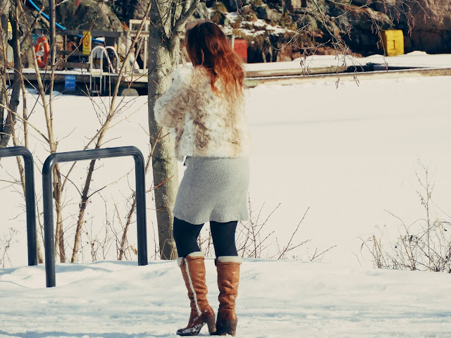 Tämä turkis on nähty muutamaan kertaan blogissa ja varmasti tullaan näkemään myöhemminkin, sen verran tästä tykkään. Ylipäänsä tykkään kaikesta karvaisesta ja pehmeästä. Tykkään tästä mallista myös siksi, että sitä voi käyttää ihan minkä vaatteen kanssa tahansa, kaikkia ei mielestäni voi. Kuten farkkujen ja pitsihameen. Sovituskuvaa en laske tähän kun siinä olen koittanut laittaa mahdollisimman tavalliset vaatteet päälleni, etteivät vie takista huomiota.
