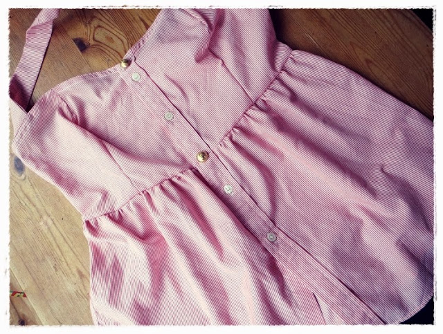 Kun yhdistelee paitoja keskenään voi ommella itselleen vaikka mekon. Yläosassa on käytetty naisten paitaa ka alaosa on kahdesta miesten super isosta paidasta yhdistetty mekon helma. Vaaleanpunainen ei oikein ole minun värini ja sitä tulee sitten harvoin käytettyä vaikka kyseistä väriä jonkin verran kaapista löytyy. Vaikka mekkoa käytetään harvoin, ei se lähde toistaiseksi mihinkään tästä huushollista.