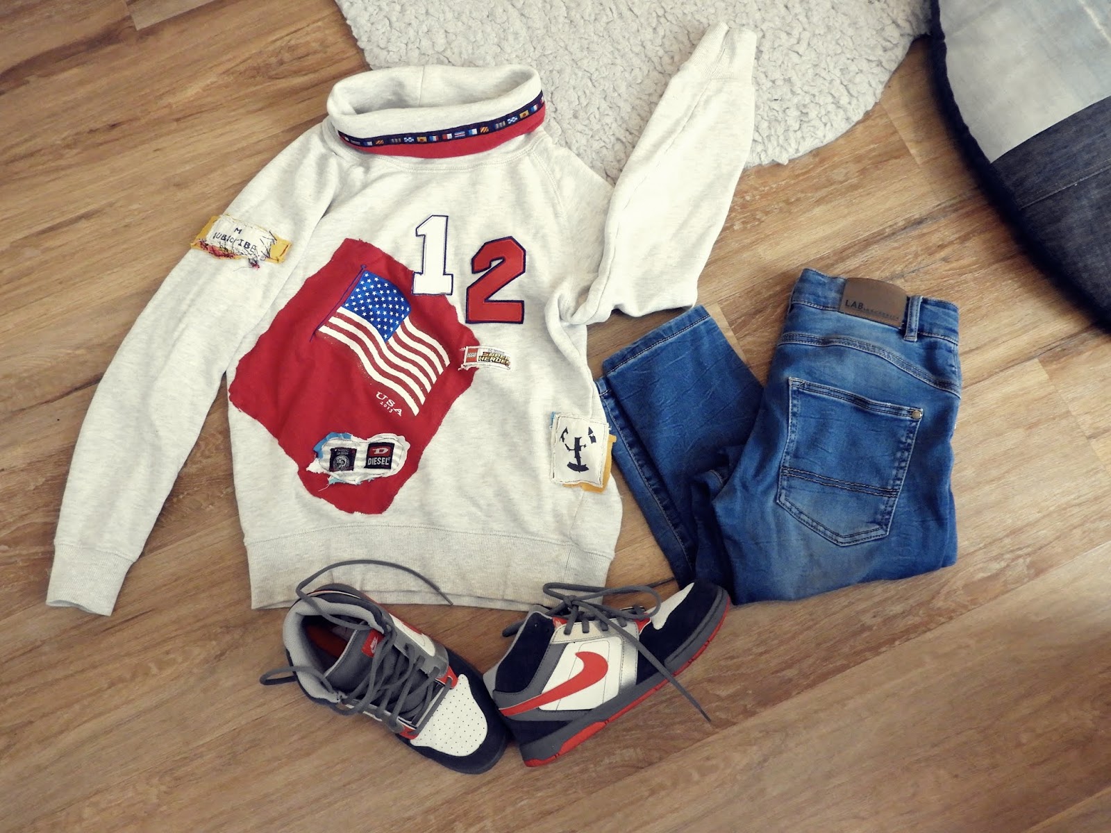 Olen siis ostanut nuo ompelumerkit Kierrätyskeskuksesta ja muut merkit on kerätty vanhoista vaatteista. Muutenkin tälläinen korjaus tapa on hauska, vaatteen ulkonäkö muuttuu todella paljon. Täältä löytyy erilainen vinkki reikien piiloitukseen. Tämä korjaustapa on nuorimmaisen ihan ehdoton suosikki ja tällä linjalla jatketaan. Tällä saa myös likatahrat hyvin piiloon…