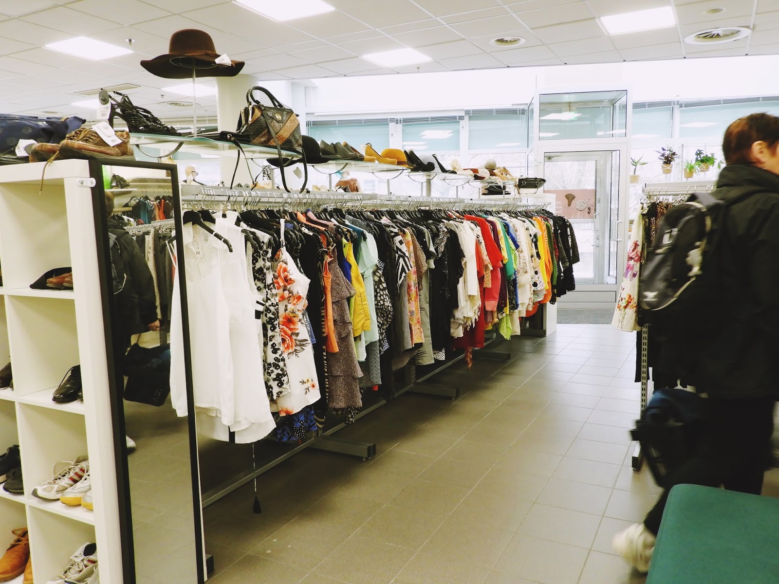 Myymälä on pieni mutta toimiva, ihanan valoisa ja tila on käytetty hyvin mutta ei tule liian täysinäistä fiilistä, vaikka tavaraa onkin paljon tarjolla. Tykkäsin todella paljon, vaikka meidän vierailu jäi lyhyeksi. Introvertti kun tarvitsee myös oman rauhan tällaisen ihmismassan jälkeen, että kestää sitten töissäkin. Nyt onkin kaksi kivaa kirppistä ihan lähekkäin, Maunula Fida sekä nyt Ogelin Kierrätyskeskus. Saa sanoa kyllä byebye ”Älä osta mitään”- haasteelle. Se on tullut nyt selväksi.